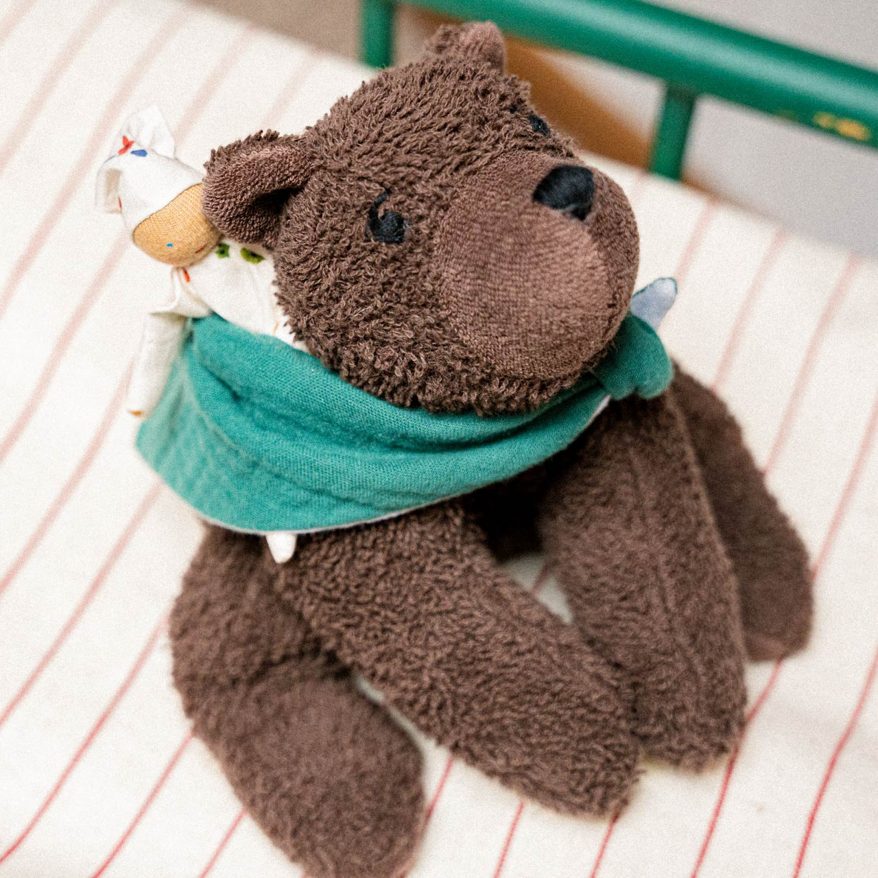 Man muss sich auch mal ein Päuschen gönnen. Kuscheltier-Bär Benji und sein kleiner Wichtel-Freund lieben es, gemütlich auf ihrem Musselin-Tuch zu liegen und sich gegenseitig die fantastischsten Geschichten zu erzählen. Die beiden sind schon ganz gespannt, dein Kind kennenzulernen und gemeinsam in ein neues Abenteuer zu starten – das Leben! Welche spannenden Dinge sie wohl gemeinsam erleben werden?