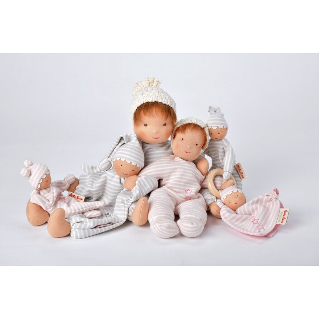 Gugguli ist eine weiche Schmuse- und Greifpuppe für Babys und Kleinkinder.