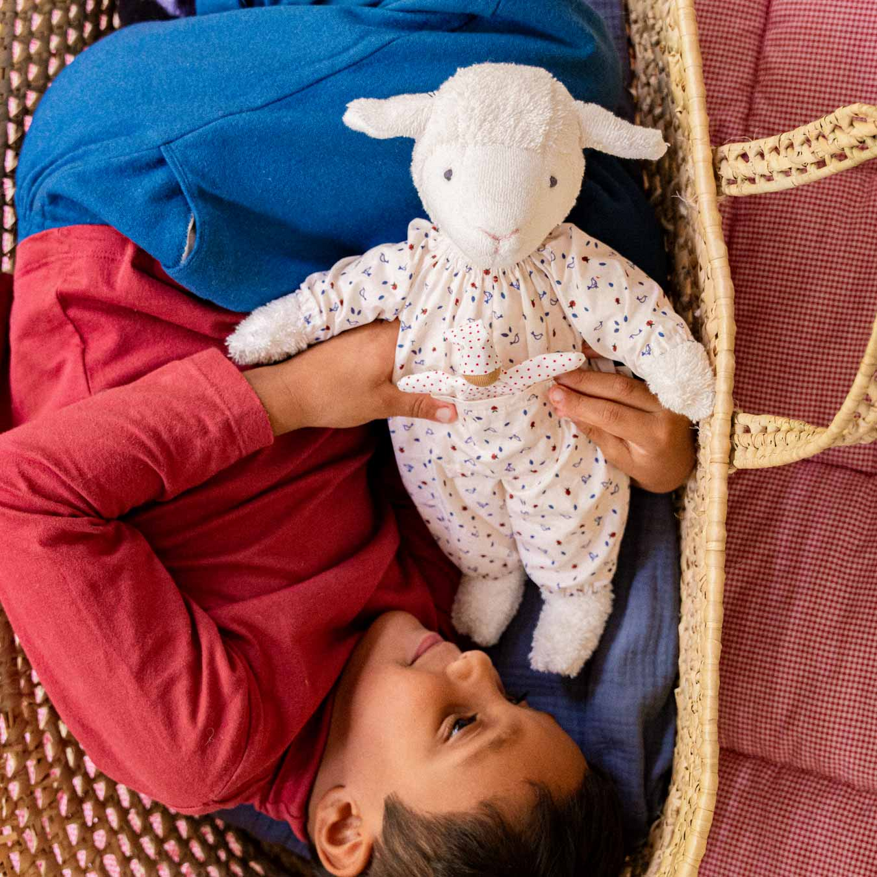 Ludwig Lamm und sein kleiner Freund sind ein farbenfrohes Power-Team. In seinem gemusterten Overall mit feinem Vogel- und Marienkäfer-Muster ist er schon ganz aufgeregt die Natur und andere Spielumgebungen deines Kindes kennenzulernen. Gemeinsam mit seinem kleinen Freund in fröhlichem roten Polkadot-Anzug und passendem Mützchen sind die beiden für jeden Spaß und jeden Streich bereit.
