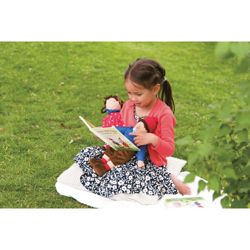 Pelle, die Puppe zu den Bilderbüchern Pippa & Pelle, ist eine 35 cm große Stoffpuppe und nach dem gleichnamigen Motiv aus dem Bilderbuch entworfen. Er hat eine rote Mütze und Haare aus Wollfranzen. Das Gesicht ist von Hand gestickt. Die Schuhe und Stulpen sind an den Körper genäht. Das blaue Oberteil mit der angenähten Hose kann einfach an- und ausgezogen werden.