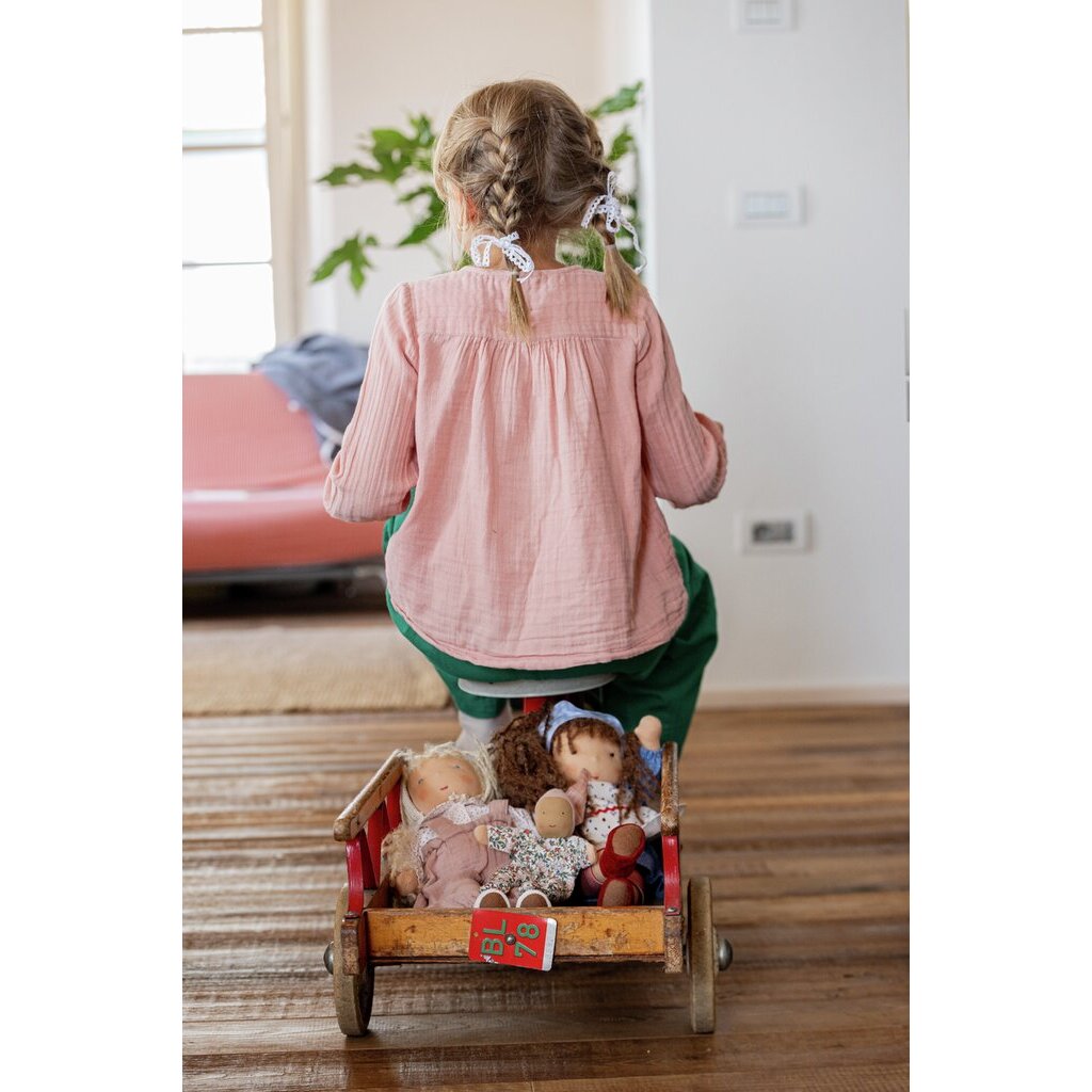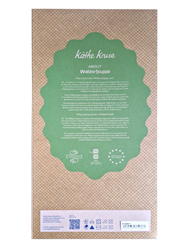Waldorfpuppe Hannah ist am allerliebsten draußen. Mit ihrer Latzhose ist sie perfekt ausgestattet, um auf Bäume zu klettern und durchs hohe Gras zu tollen. Immer dabei: Ihre kleine Gans Friedrich, die ihr fröhlich hinterher watschelt. Für Kinder ist eine Vorgeschichte zu ihrem Spielzeug oft hilfreich, um darauf aufbauend, eigene Geschichten zu erfinden. So wird ihre Kreativität sowie Fantasie geschult.