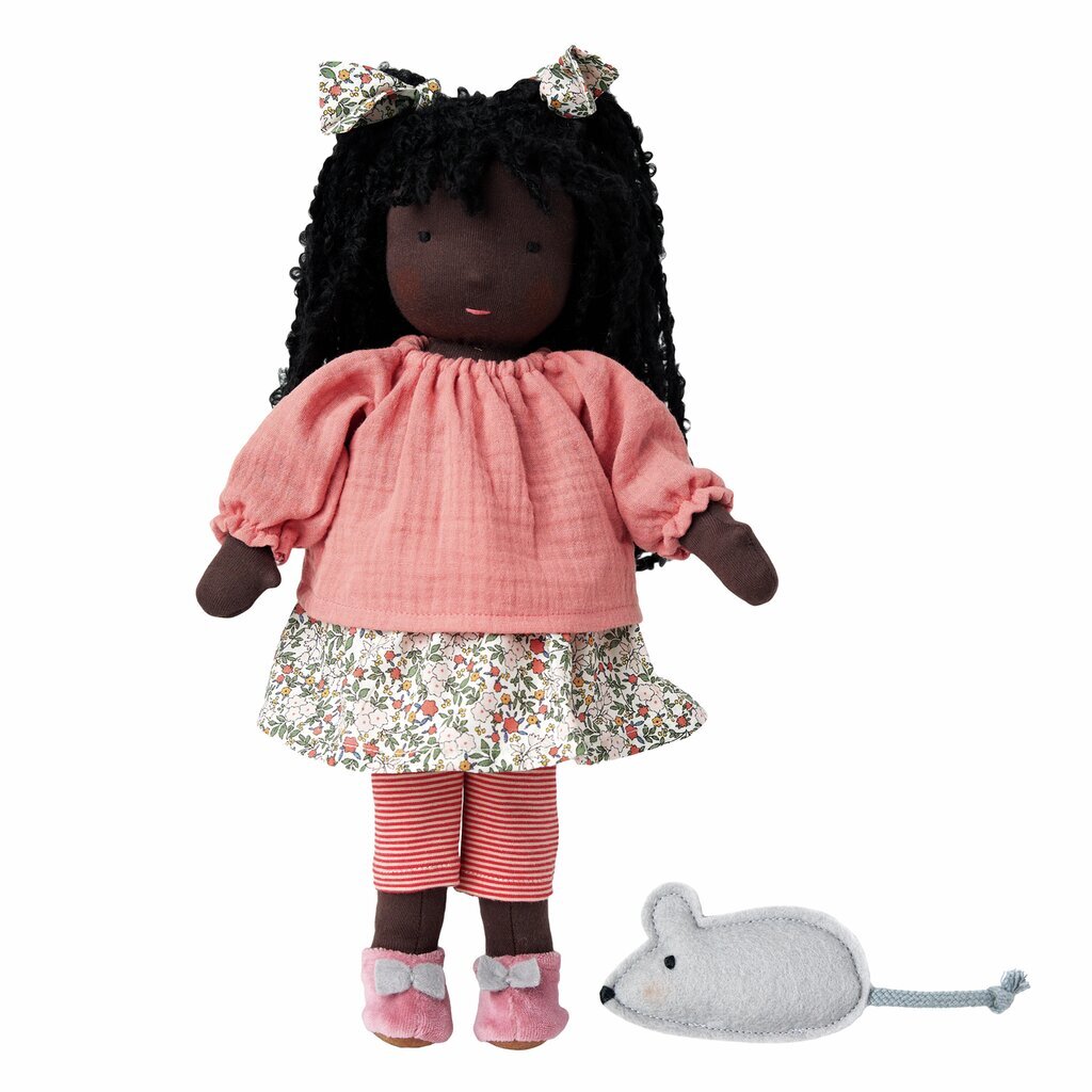 Waldorfpuppe Nia liebt es, wenn ihre Eltern ihr schöne Frisuren machen und Schleifen ins Haar flechten. Auch schöne Kleider mag Nia sehr gerne – am liebsten mit Taschen, damit sie ihre kleine Maus darin herumtragen kann. Puppen helfen Kindern oft, die Welt um sich herum besser zu verstehen. Sie können Situationen nachspielen oder Eltern können anhand des kleinen Freundes Dinge besser veranschaulichen und erklären – bspw., wieso man bei Regen einen Regenmantel tragen sollte.