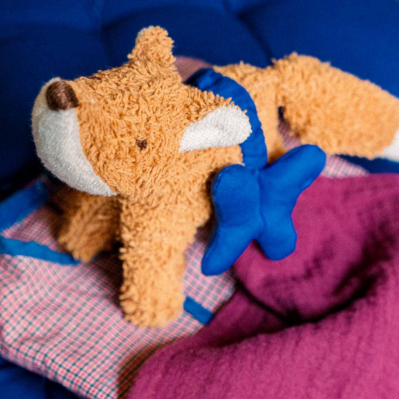 Wer schaut denn da so frech? Das ist Flori Fuchs mit ihrem Helden-Cape! Sie ist Kuscheltier und Schmusetuch in einem. Mit dem Kuscheltier-Fuchs an der Seite wird jeder Tag zum unvergesslichen Erlebnis! Das Tuch ist mit einem Schmetterlingsgummiband um den Bauch des Fuchses befestigt, kann abgenommen und als Cape oder Decke verwendet werden.