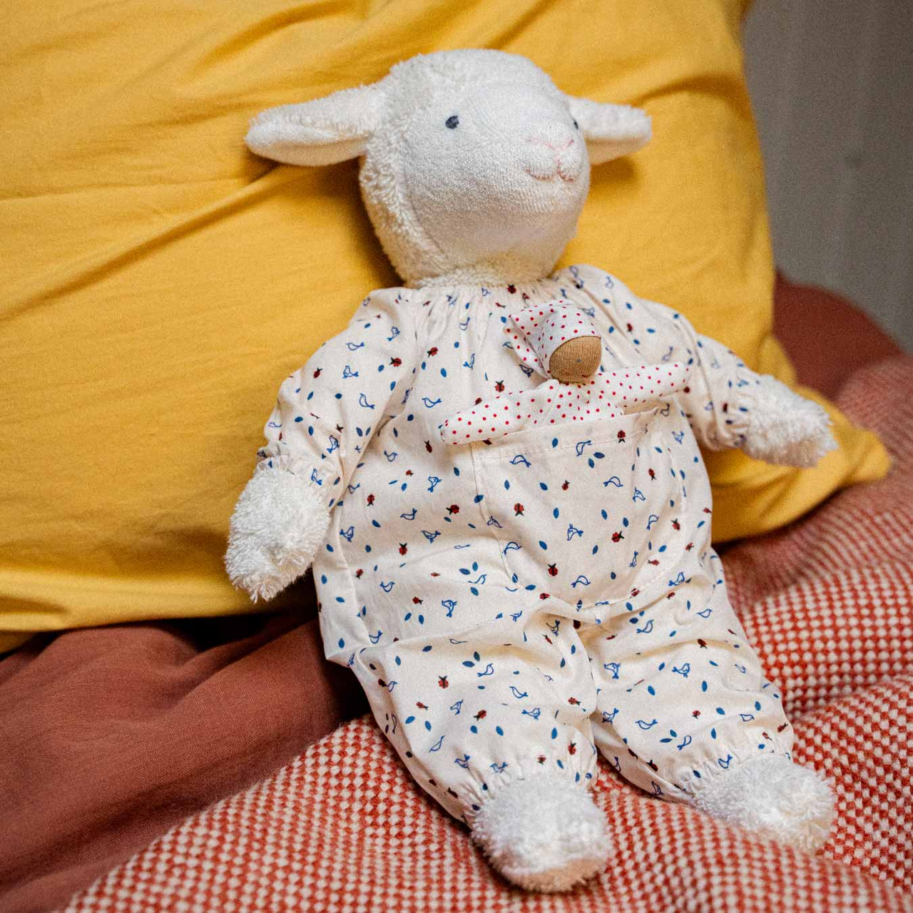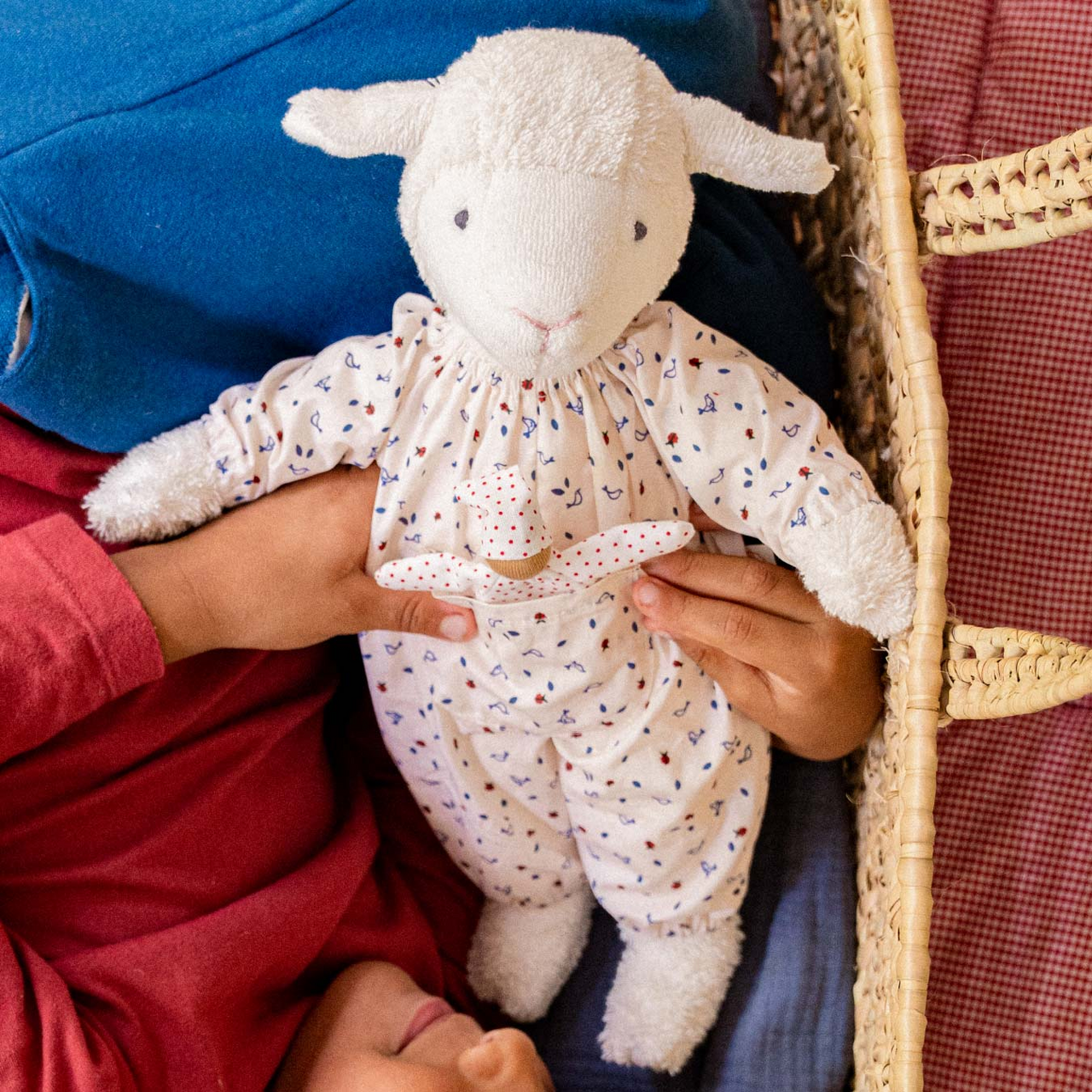 Ludwig Lamm und sein kleiner Freund sind ein farbenfrohes Power-Team. In seinem gemusterten Overall mit feinem Vogel- und Marienkäfer-Muster ist er schon ganz aufgeregt die Natur und andere Spielumgebungen deines Kindes kennenzulernen. Gemeinsam mit seinem kleinen Freund in fröhlichem roten Polkadot-Anzug und passendem Mützchen sind die beiden für jeden Spaß und jeden Streich bereit.