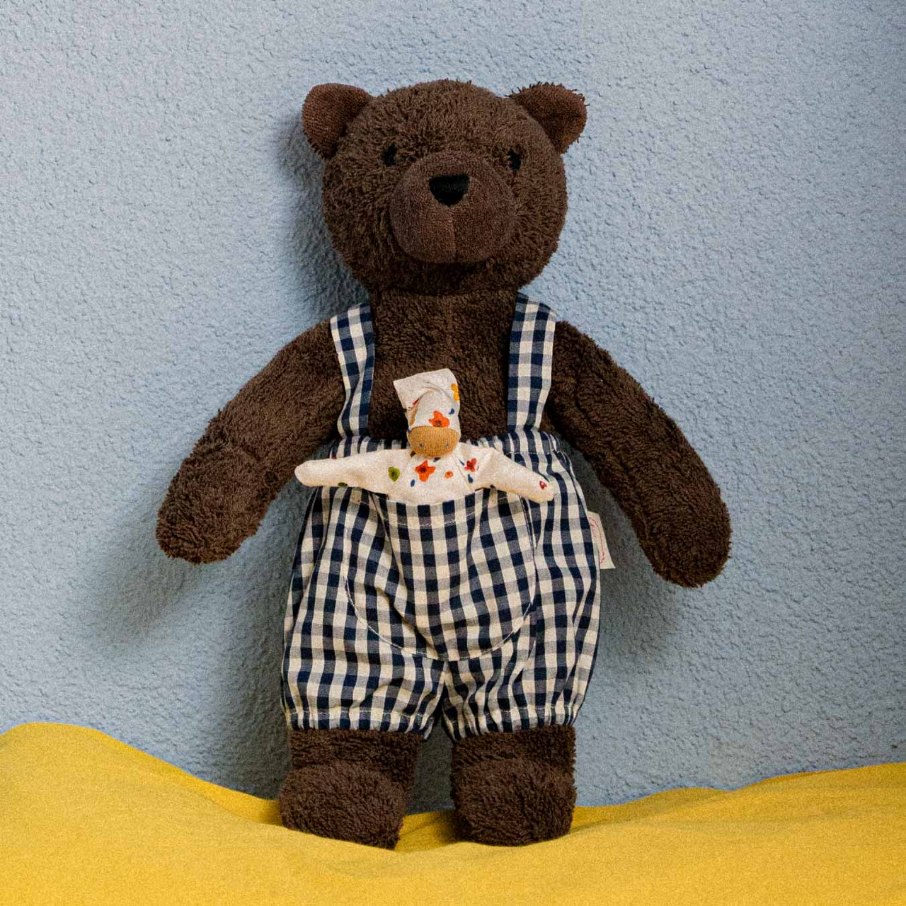 Bärin Bella ist eine echte Bärenmutter – sanftmütig und stark zugleich hat sie dein Kind in allen Lebenssituationen fest im Blick. Mit ihrem Fell aus weichem Baumwollfrottee lädt sie zum Kuscheln und Liebhaben ein. In ihrer karierten Latzhose aus Baumwollstoff versteckt sich ihr kleiner Begleiter, der von der starken Bärin beschützt wird und zu Rollenspielen einlädt. Welche Abenteuer wird dein Kind mit seiner starken Begleiterin erleben?
