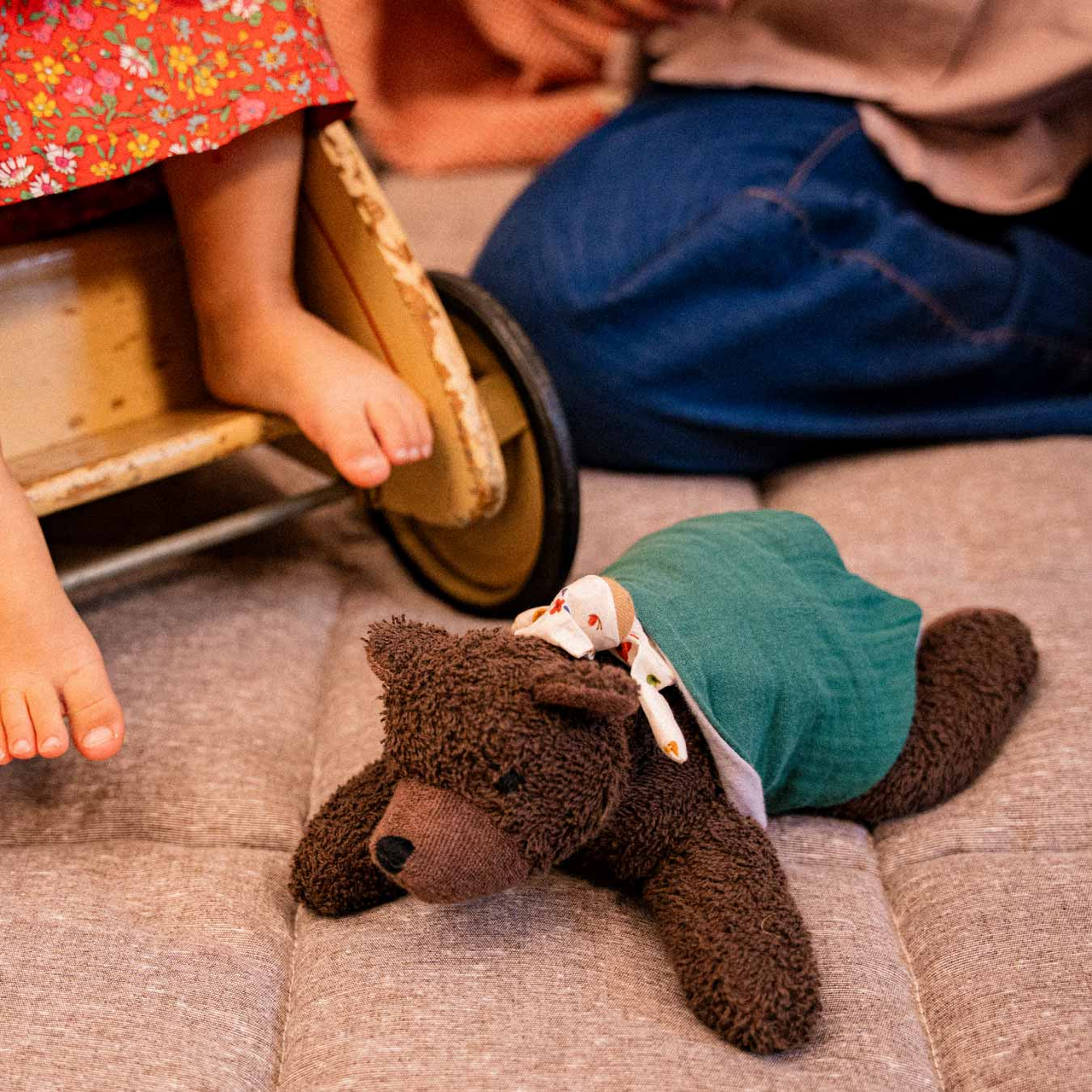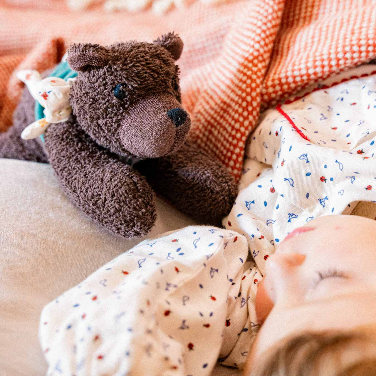 Man muss sich auch mal ein Päuschen gönnen. Kuscheltier-Bär Benji und sein kleiner Wichtel-Freund lieben es, gemütlich auf ihrem Musselin-Tuch zu liegen und sich gegenseitig die fantastischsten Geschichten zu erzählen. Die beiden sind schon ganz gespannt, dein Kind kennenzulernen und gemeinsam in ein neues Abenteuer zu starten – das Leben! Welche spannenden Dinge sie wohl gemeinsam erleben werden?