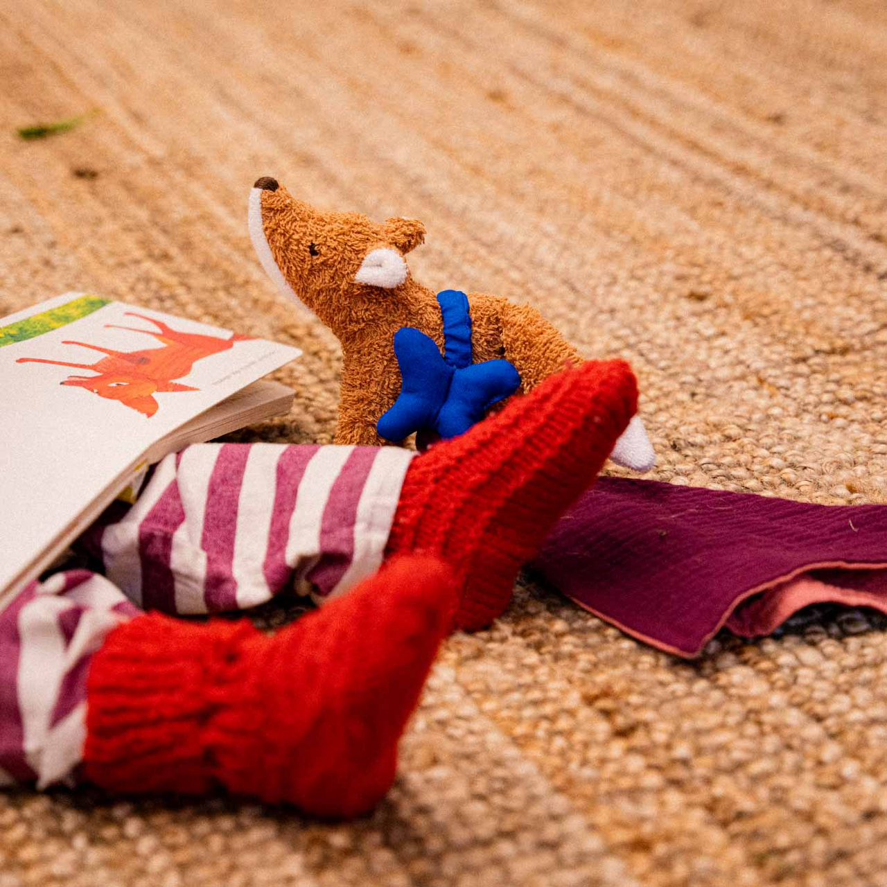 Wer schaut denn da so frech? Das ist Flori Fuchs mit ihrem Helden-Cape! Sie ist Kuscheltier und Schmusetuch in einem. Mit dem Kuscheltier-Fuchs an der Seite wird jeder Tag zum unvergesslichen Erlebnis! Das Tuch ist mit einem Schmetterlingsgummiband um den Bauch des Fuchses befestigt, kann abgenommen und als Cape oder Decke verwendet werden.