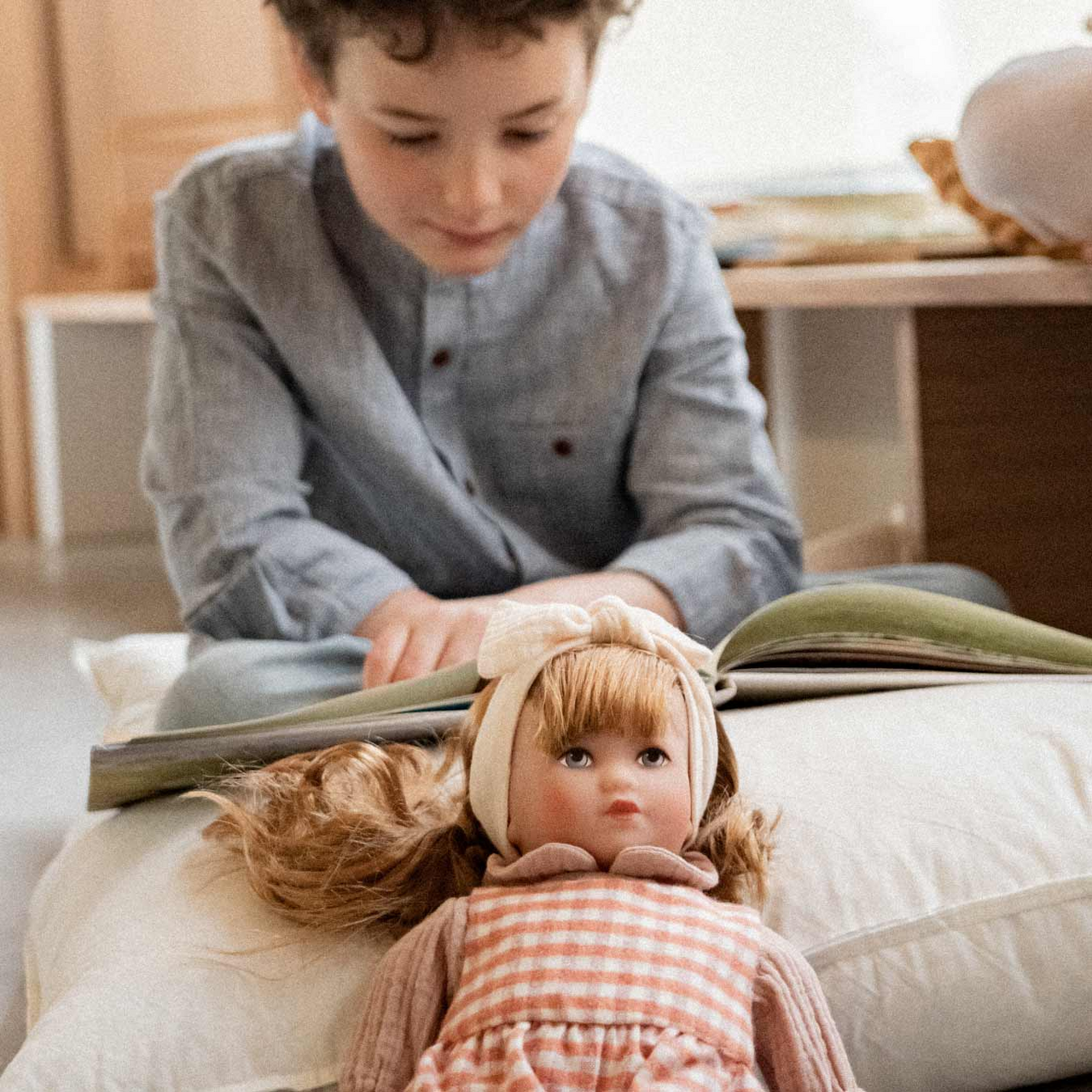 Glückskind Ella liebt ihre langen Haare. Am liebsten trägt sie sie in Zöpfen mit einem süßen Haarband, aber sie liebt es auch, neue Frisuren auszuprobieren. Mit dieser Puppe sind der Fantasie deines Kindes keine Grenzen gesetzt. Durch das Ausdenken von gemeinsamen Abenteuern bis zur kreativen Gestaltung der wunderbar weichen Haare wird die Fantasie deines Kindes gefördert. Zu Hause oder Unterwegs, mit einem treuen Puppenfreund fällt alles leichter.