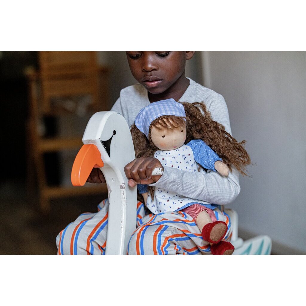Ein neuer Tag, ein neues Outfit! Tildas Puppenkleidung mit dem blau gepunkteten Kleid und der Schürze mit Aufbewahrungstäschen eröffnen fatasievolle Spielwelten. Das süße Haartuch komplementiert das wunderschöne Outfit und eignet sich besonders für Frühlings- und Sommertage. Wenn die Lieblingspuppe die passende Kleidung trägt, verstehen Kinder selbst oft besser, warum sich ein Kleidungsstück für bestimmte Situationen eignet.