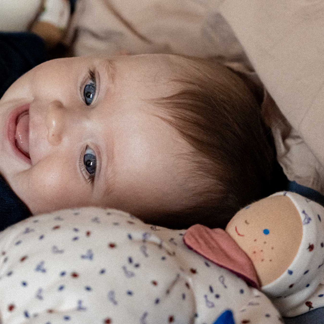 Die Käthe Kruse-Stoffpuppe in wunderschönem Käthe Kruse-Bauernhofprint mit hellem Hautton kann ab den ersten Stunden an der Seite deines Kindes sein. Durch ihren weichen Körper eignet sie sich perfekt selbst für kleinste Hände, regt zu ersten Greifversuchen an und kann bedenkenlose mit im Bettchen schlafen.