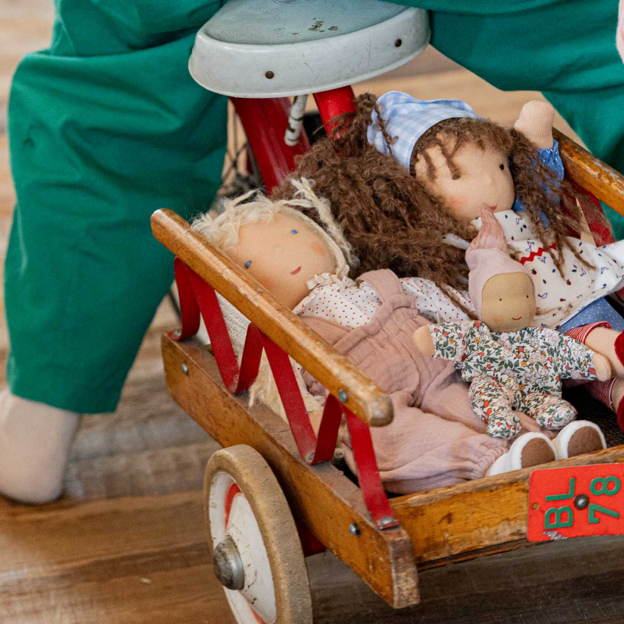 - Alle Waldorfpuppen sind aus natürlichen Materialien gefertigt und mit Wolle gefüllt. Wolle ist weich und warm, sollte daher von Hand mit einem Wollwaschmittel gewaschen werden und nie lang im Wasser liegengelassen werden. Die Puppen trocknen am besten an der frischen Luft auf dem Bauch liegend.