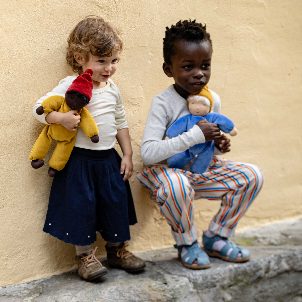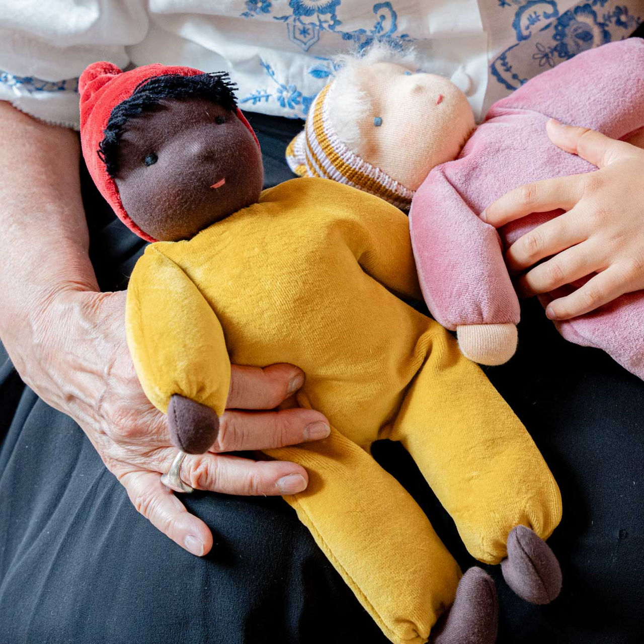 Wunderbar weich und warm – unsere Nanas sind die größten der Waldorf-Puppenfamilie und einfach zum Liebhaben. Mit einer Nana zieht ein Freund oder eine Freundin für dein Kind ein und ist immer und überall dabei – ob im Bettchen, im Wagen, zum Spielen oder Trösten. Nanas sind in vielen schönen Farben erhältlich, bestehen aus weichstem Bio-Nickistoff und sind mit Bio-Schafwolle gefüllt. Jede Puppe wird in liebevoller Handarbeit gefertigt und ist – wie dein Kind – einzigartig.